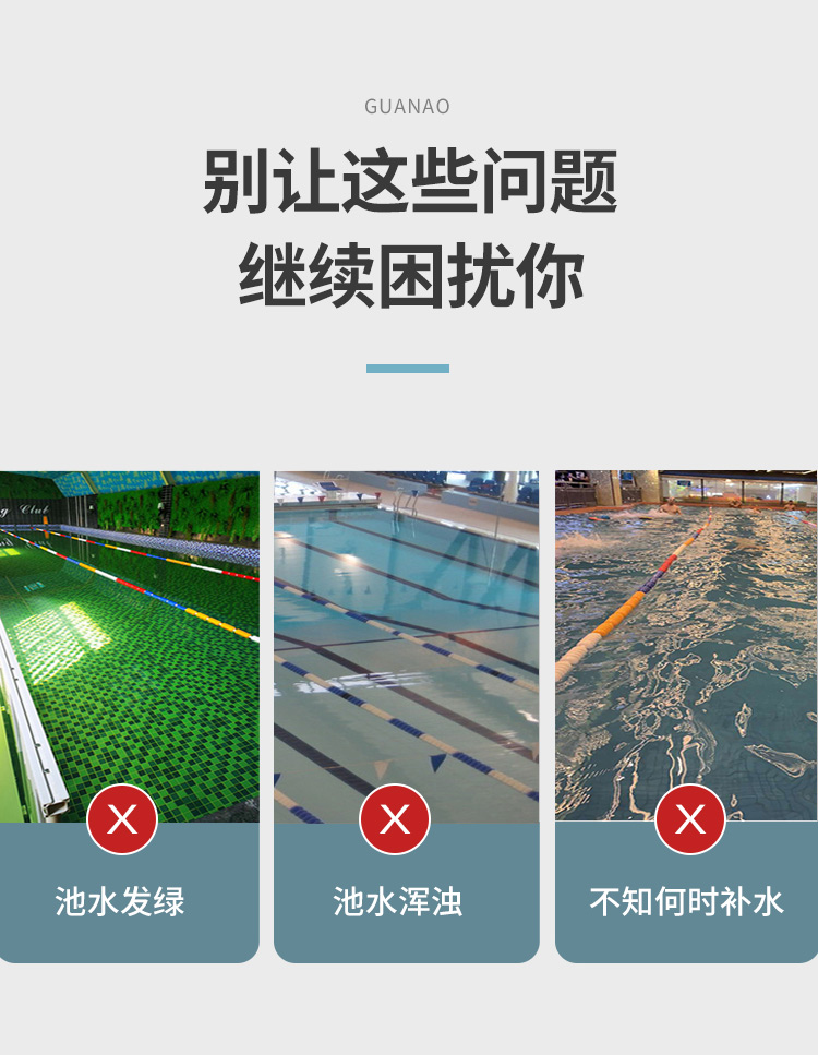 4、檢測(cè)精準(zhǔn),項(xiàng)目齊全。貫奧泳池水質(zhì)監(jiān)測(cè)儀器設(shè)備可檢測(cè)12個(gè)常規(guī)項(xiàng)目,參數(shù)可自由定制。